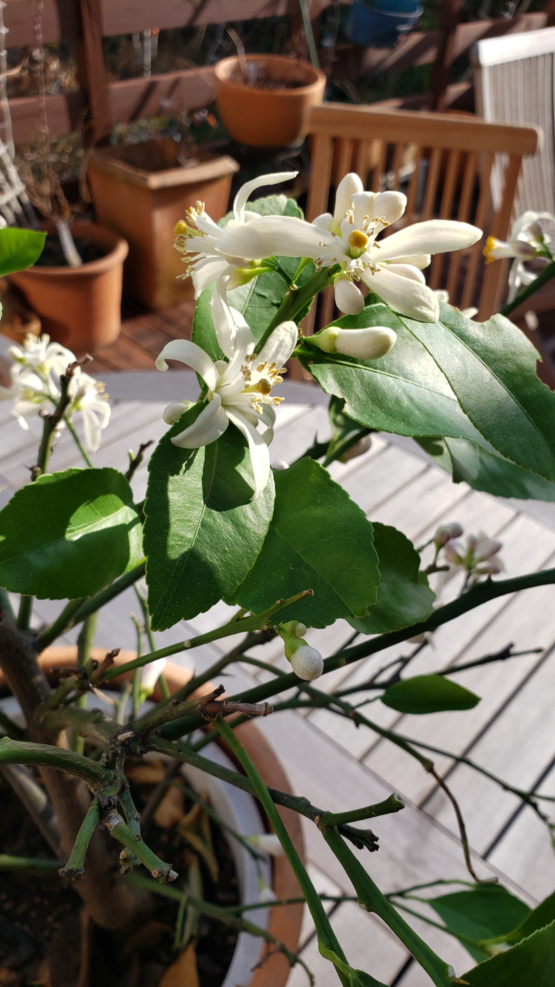 我が家では、檸檬の花が真っ盛り。