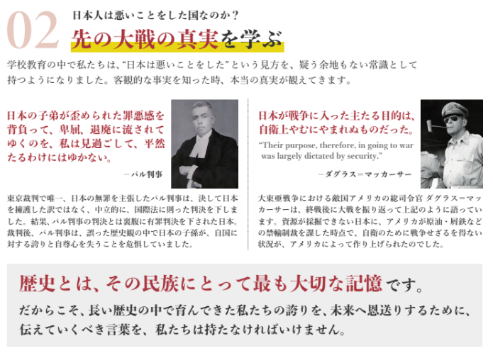 どんな歴史観を持っているかは個人の自由であり、歴史観を持っているということが大切です。しかしこのままでは、私たちの子孫が歪められた歴史観の中で罪悪感を背負い、卑屈に生きていくことになります。